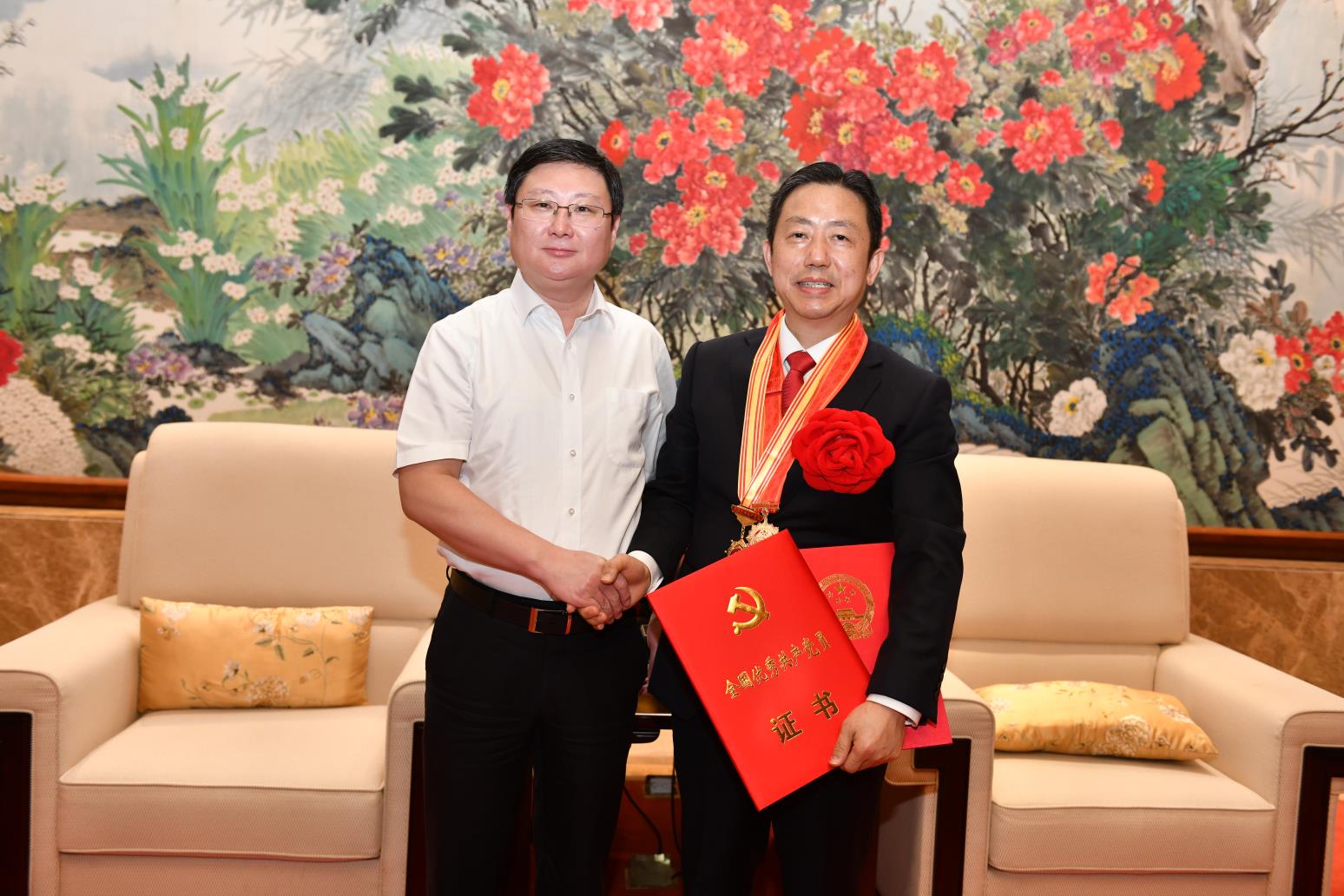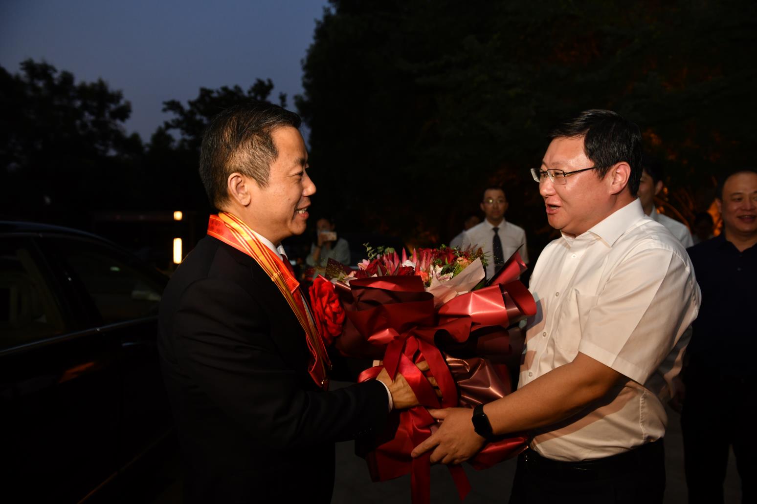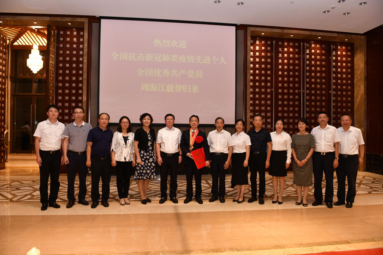 9月8日傍晚,受無錫市委黃欽書記委托,錫山區(qū)委書記周文棟、組織部部長竇虹、副區(qū)長陳奕一行代表市區(qū)黨政班子前往紅豆杉莊舉行簡單而隆重的儀式,熱烈歡迎剛剛獲“全國優(yōu)秀共產(chǎn)黨員”“全國抗擊新冠肺炎疫情先進個人”的紅豆集團黨委書記周海江從北京載譽歸來。