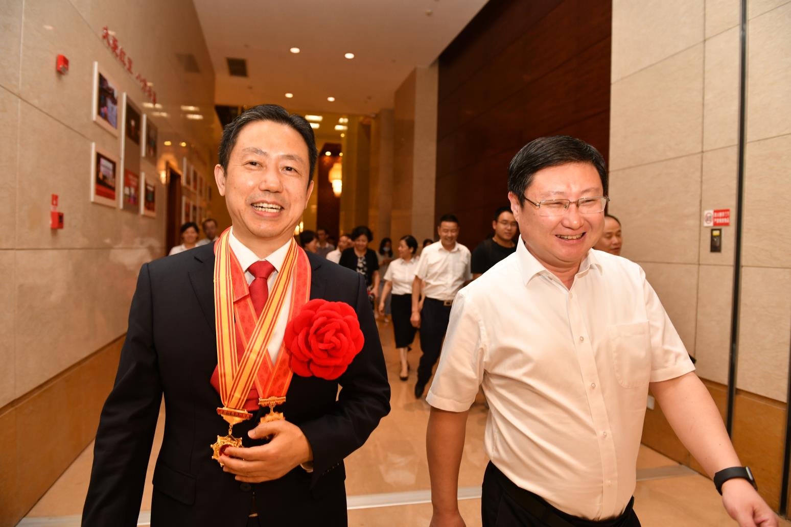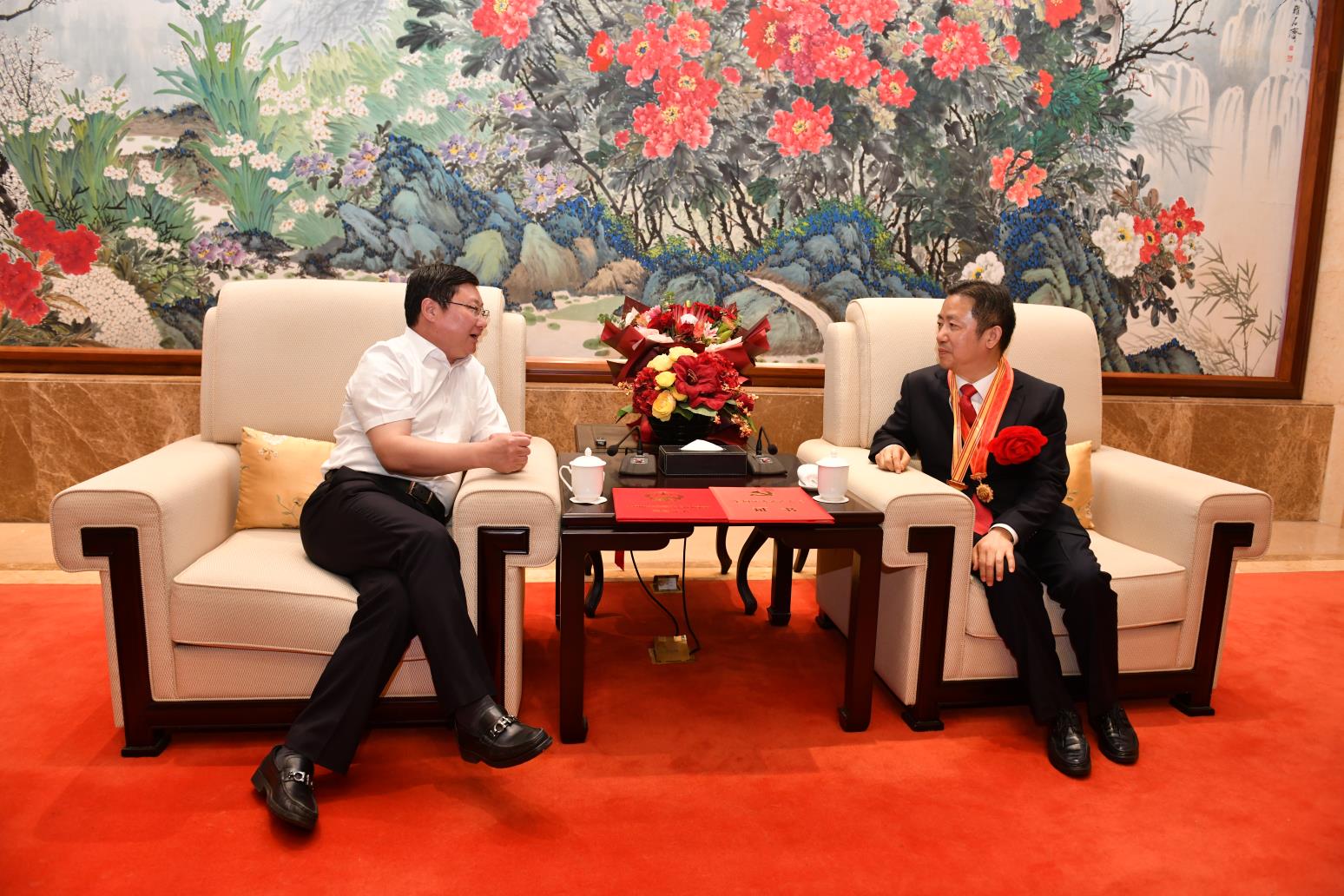 一見面,周文棟就高興地說,我代表錫山區(qū)四套班子,還有70萬錫山的老百姓歡迎周海江凱旋歸來。周海江獲得的兩項殊榮,不僅是個人的榮譽,紅豆的榮譽,還是我們整個錫山,還有無錫人民的巨大榮譽,是我們錫山區(qū)、無錫市的驕傲。可以說,周海江和紅豆集團獲得了黨建工作榮譽(全國先進基層黨組織、全國優(yōu)秀黨務(wù)工作者、全國優(yōu)秀共產(chǎn)黨員)的大滿貫。周海江十分感謝市區(qū)黨政班子的關(guān)心和支持。他說,此次全國抗擊新冠肺炎疫情表彰大會的儀式感很強,正如我們在視頻中所看到的鐘南山院士由國賓護衛(wèi)隊護衛(wèi)前往人民大會堂這是歷史第一次,勛章是由禮儀兵護送上去。我覺得黨中央是想通過此次活動把我們民族精神賦予新的內(nèi)涵,即增加了抗疫精神,把抗疫的強大精神力量轉(zhuǎn)化為我們戰(zhàn)勝中美貿(mào)易戰(zhàn)等各種挑戰(zhàn)的力量源泉。周海江還表示,要化這種受激勵的奮進力量為推動紅豆轉(zhuǎn)型發(fā)展的動力。要努力把紅豆的工作做好,把企業(yè)經(jīng)營好,加快進化升級,不負黨委、政府和人民的期望。周文棟表示,感同身受周海江參會氛圍的感染和偉大抗疫精神的力量傳遞,希望這種奮進的力量也能成為我們錫山“做全市重要增長極,當改革創(chuàng)新先行軍”的動力源!