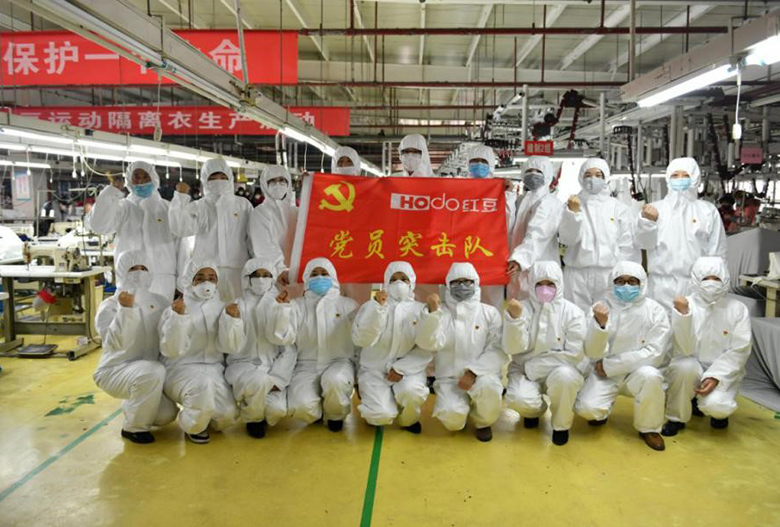 新冠肺炎疫情發(fā)生以來,防疫物資需求量激增。與疫情賽跑,和時(shí)間較量,紅豆集團(tuán)積極響應(yīng)、快速反應(yīng)、爭(zhēng)分奪秒,2月1日,紅豆集團(tuán)連夜成立防護(hù)服項(xiàng)目指揮部,并組建黨員突擊隊(duì),沖鋒陷陣,快速達(dá)產(chǎn)。