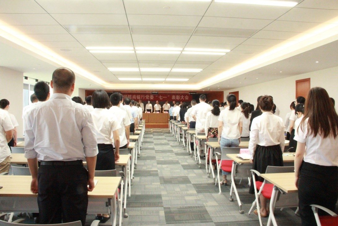 在建黨99周年到來(lái)之際,為激勵(lì)和引導(dǎo)全體黨員進(jìn)一步貫徹落實(shí)習(xí)近平新時(shí)代中國(guó)特色社會(huì)主義思想和黨的十九大及十九屆二中、三中、四中全會(huì)精神,表彰在打好疫情防控阻擊戰(zhàn)、推動(dòng)錫商銀行籌建開(kāi)業(yè)、推動(dòng)紅豆高質(zhì)高效發(fā)展中涌現(xiàn)的先進(jìn)典型,無(wú)錫錫商銀行黨委于6月30日上午隆重召開(kāi)了慶祝中國(guó)共產(chǎn)黨成立99周年暨迎“七一”表彰大會(huì)。大會(huì)由黨委副書(shū)記、錫商銀行行長(zhǎng)奚國(guó)光同志主持,黨委班子成員和各支部(總支)全體黨員出席會(huì)議。